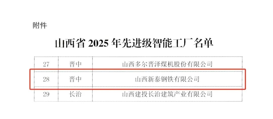 山西新泰鋼鐵有限公司成功入選山西省2025年先進級智能工廠